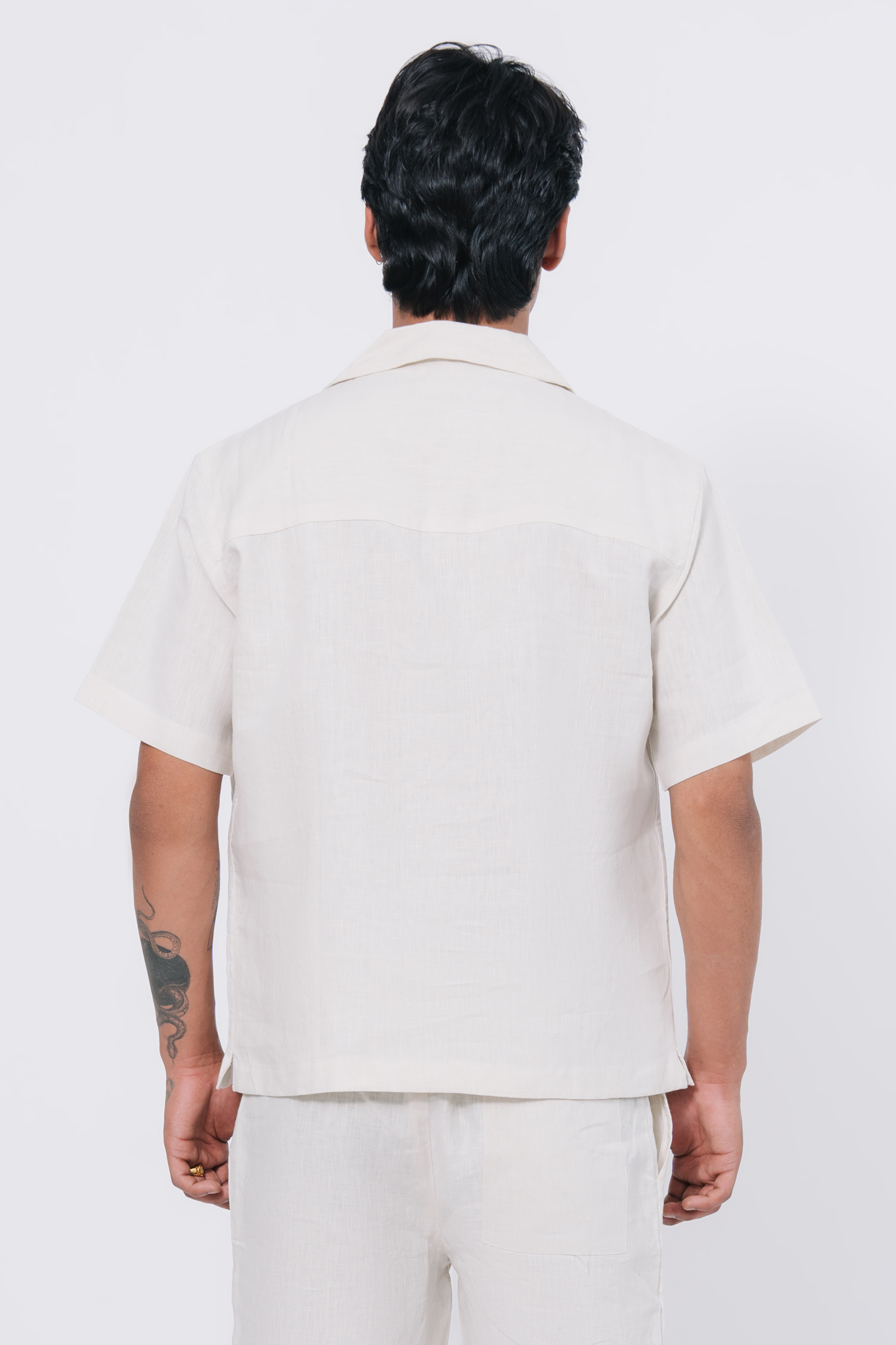 Boxy fit Front Opening shirt featuring Cuban Collar and short sleeves.