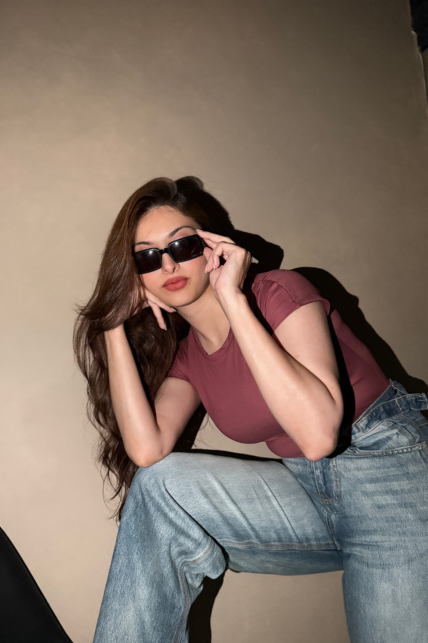 Cap sleeves bodysuit with round neck. Featuring shoulder pleats and snap-button fastening at the bottom.